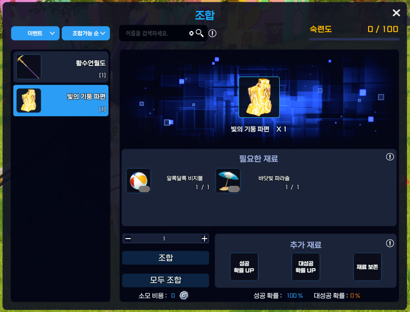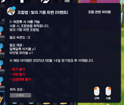 - 조합법 : 빛의 기둥 파편 (이벤트) |