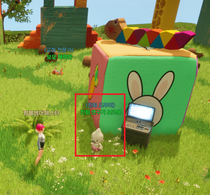 - 시작에 마을에 있는 진화 도우미 <보코몬>을 찾아가기!