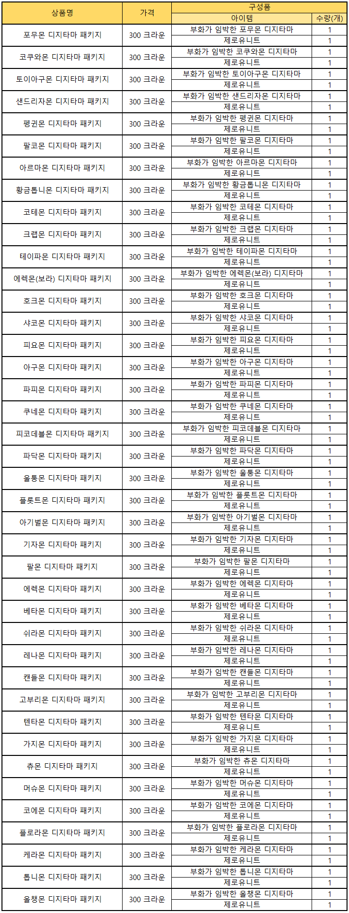 ※ 구성품 모두 획득 가능하며 거래 불가입니다.