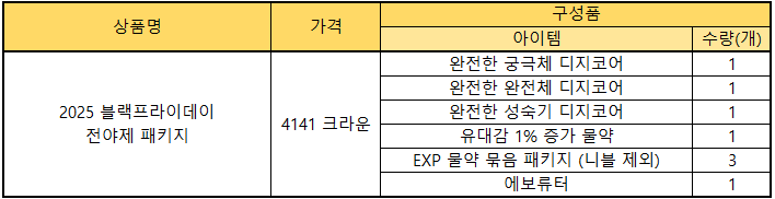 ※ 판매 기간 : 2025년 11월 13일(목) 13:00 이후 ~ 2025년 11월 20일(목) 예정된 정기점검 전까지