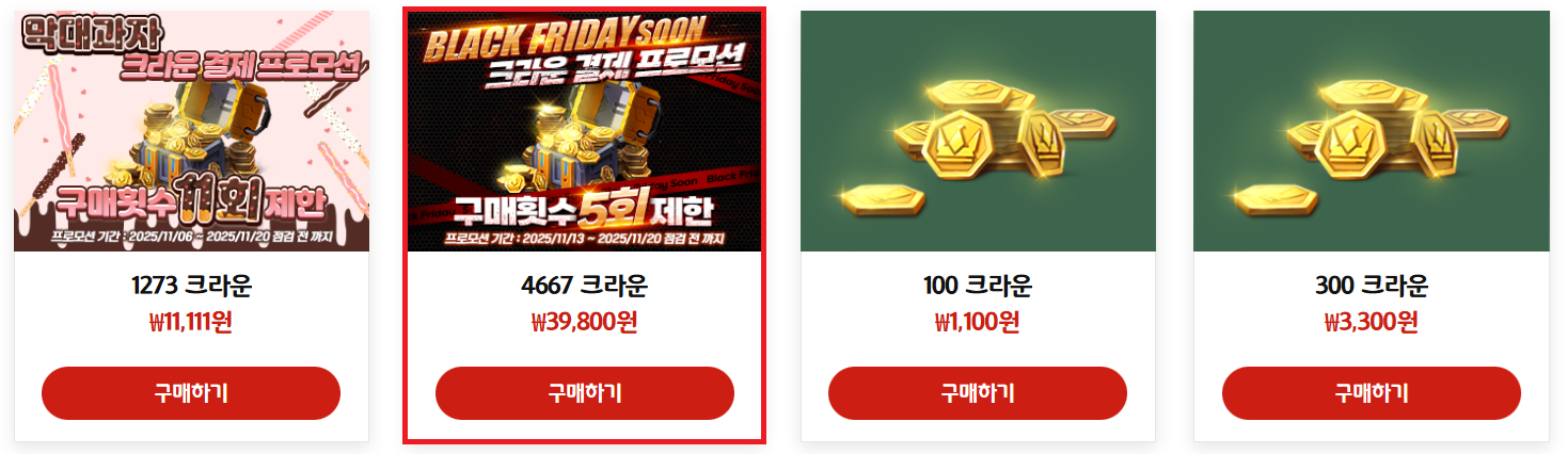블랙프라이데이 전야제 크라운 결제 프로모션