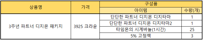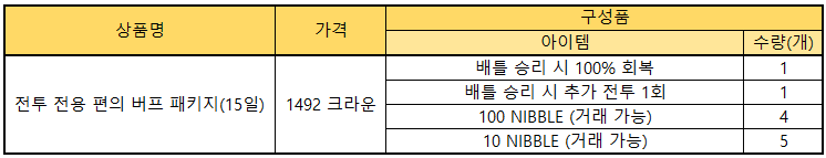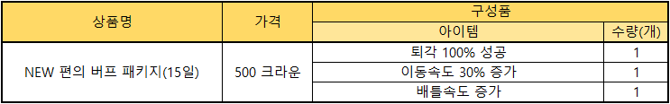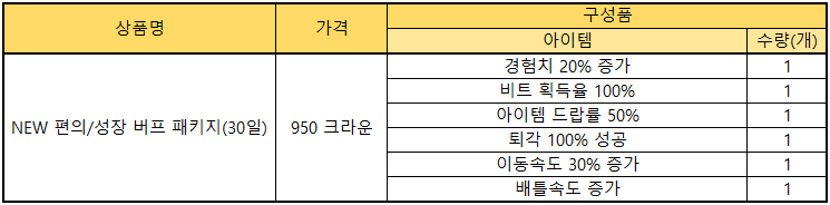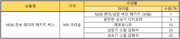 ※ 초보 테이머 패키지 박스 구성품 중 버프 패키지가 변경됩니다.