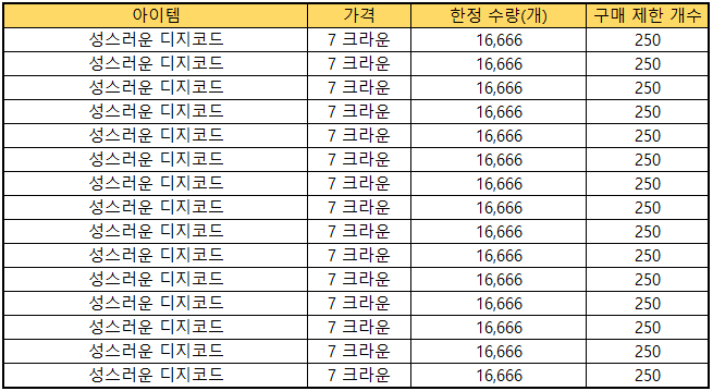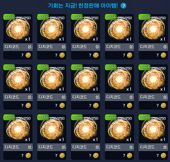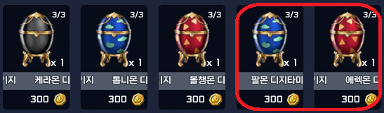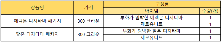 ※ 해당 아이템은 모두 거래 가능하며, 테이머당 최대 250개까지 각각 구매 가능합니다.