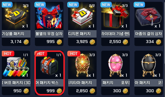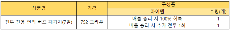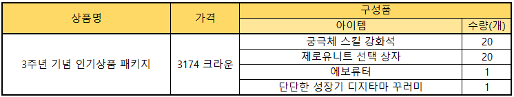 ※ 각 패키지는 2주 동안 3회 구매 가능하며, 구성품 모두 획득합니다.