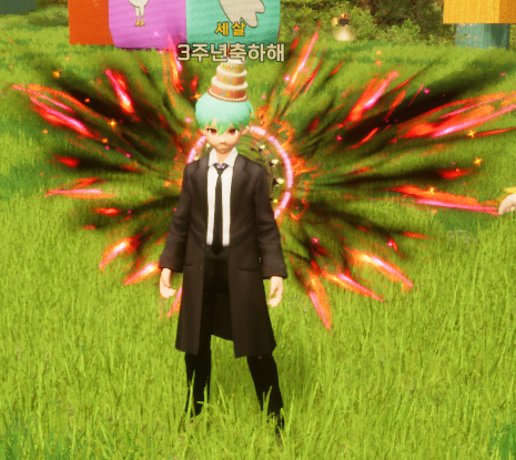 1. 3주년 기념 이벤트를 통해 획득한 날개 코스튬, 칭호, 모자 코스튬 3종을 모두 착용한 모습으로 사진을 촬영해 주세요!