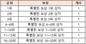 ※ 1~20위 순위를 확인하실 수 있도록 매 주 목요일 마다 오후 12시에 공지로 안내해 드릴 예정입니다.