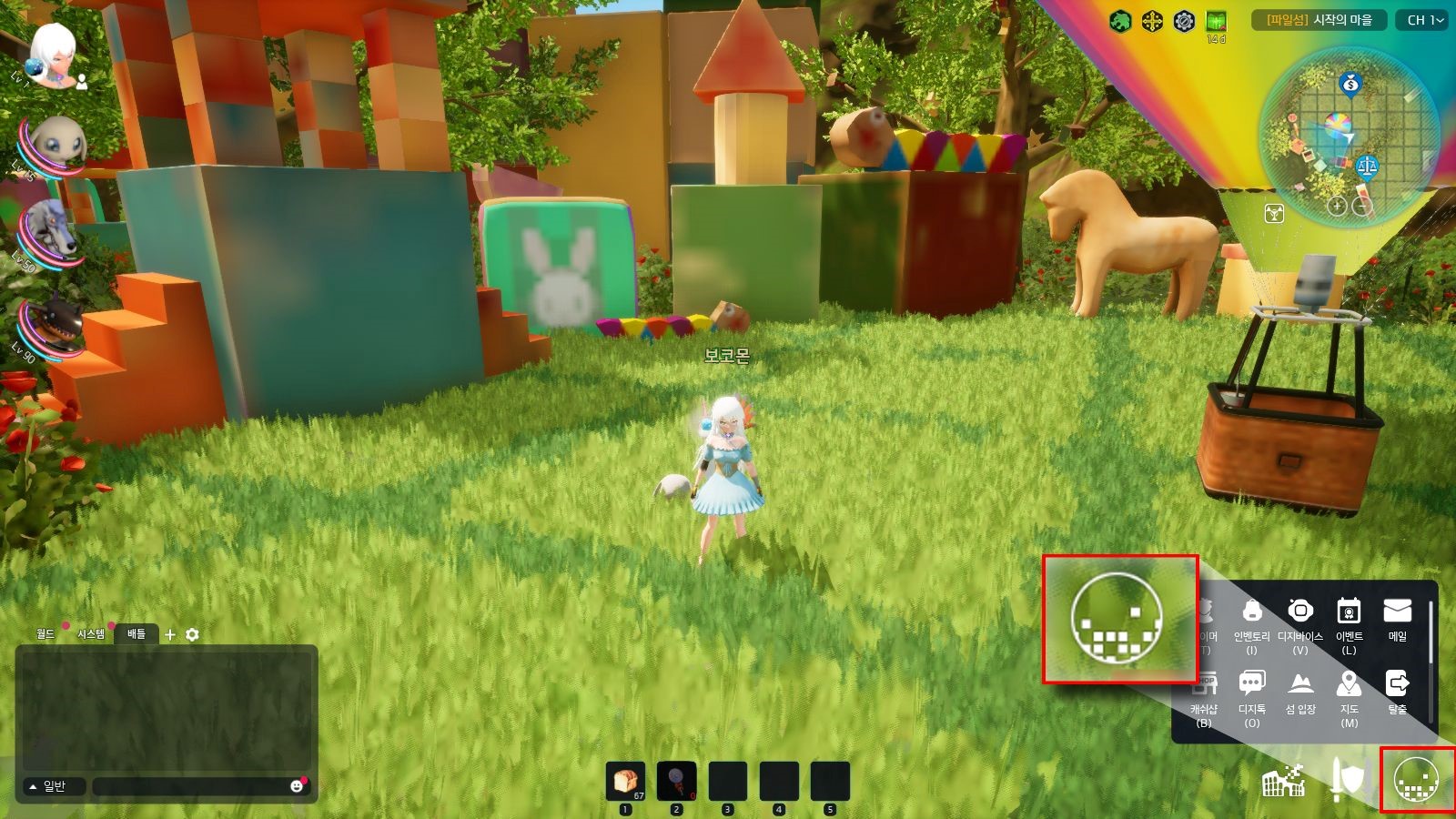 월드에서 퀵 메뉴 버튼을 통해 다양한 기능을 이용 할 수 있습니다.