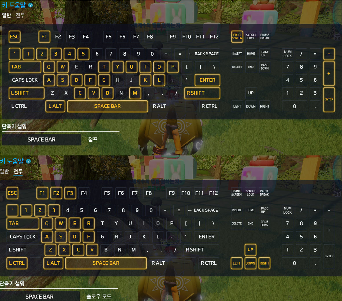 1-2. 키 도움말은 일반과 전투 2가지로 나뉩니다.