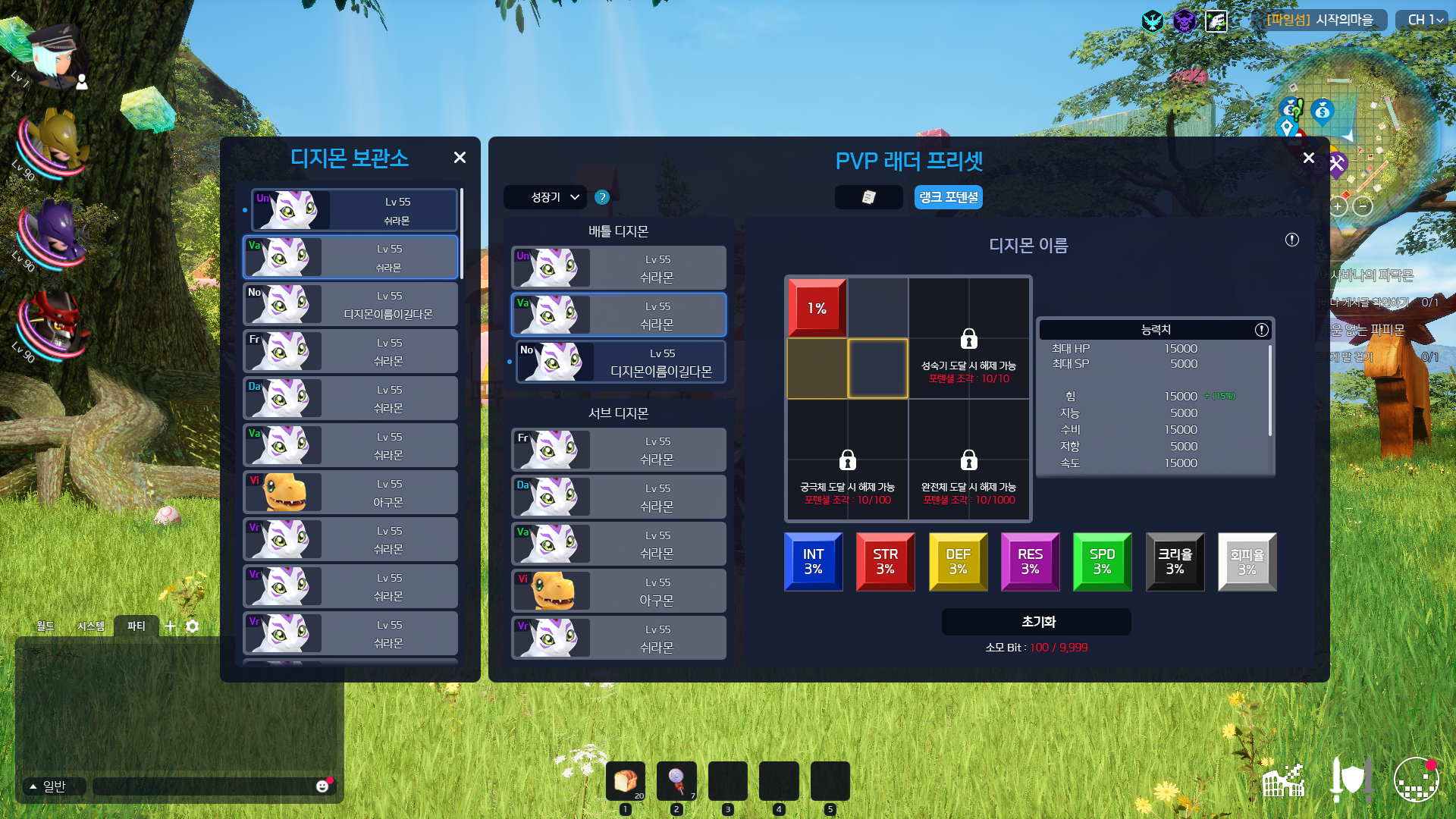 중복 디지몬 출전불가, 프리셋 기능, 고의 매칭 취소 페널티 등..