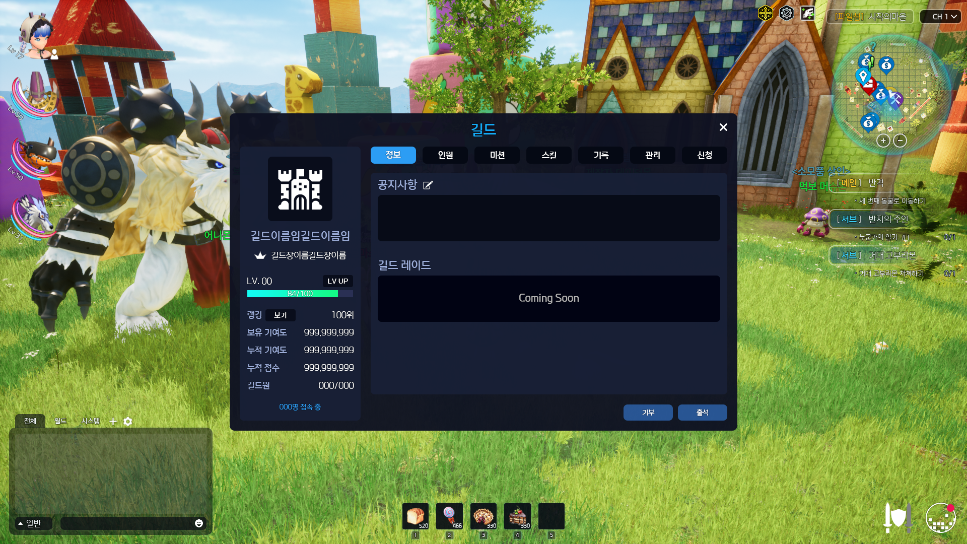 길드 개선 1차는 4월을 목표로 진행하고 있습니다.