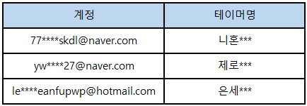 안녕하세요. 디지털 월드로 접속! <디지몬 슈퍼럼블> 입니다. 디지몬 슈퍼럼블 운영정책 위반 사유에 해당되는 계정을 공지드립니다. 하단 리스트를 참고 부탁드립니다. ================================================= [어뷰징 계정 1차 (15일 정지) - 3건]