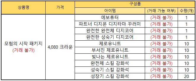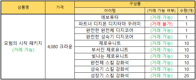 - [모험의 시작 패키지] 거래 여부 변경