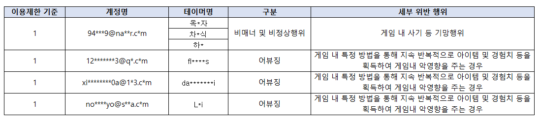 ※ 해당 유저들은 운영정책에 따라 영구이용제한