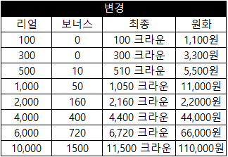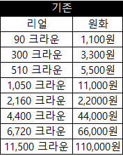 ※ 1,100원의 크라운 지급량 증가, 나머지 품목의 총 지급 크라운은 변동 없습니다.