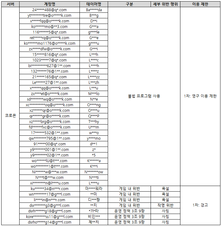 추가로, 작명위반 및 사칭 신고건에 대한 테이머명은 제재가 확정될 시 강제적으로 테이머명이 변경될 수 있다는 점을 참고하여 주시기 바랍니다.