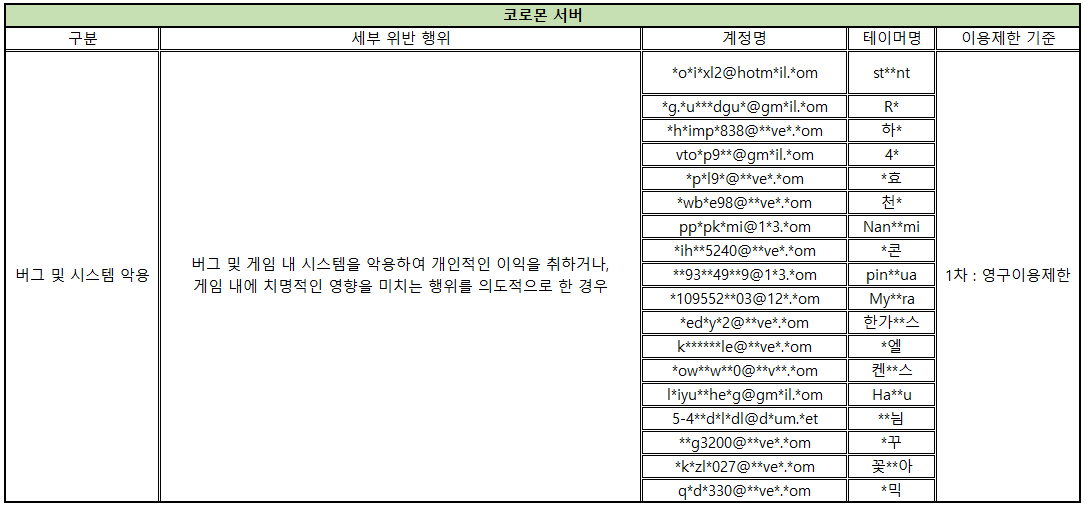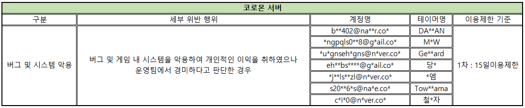 모든 로그조사를 마쳤으며, 운영정책에 따라 시스템 악용자에 대한 제재가 진행됩니다.