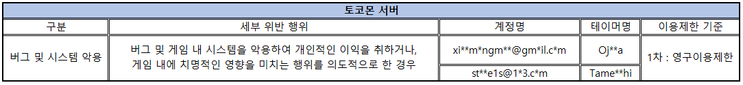 스파이럴 탐지기에서 아포카리몬이 나올 때 까지 접속/접속종료를 반복하는 테이머 분들을 적발하였습니다.
