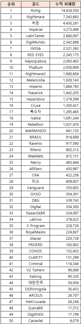 이에 따라 해당 서버의 길드 토벌전 순위를 안내 드립니다.
