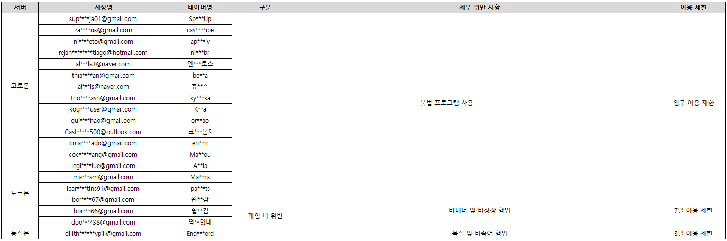 접수된 신고 문의의 경우, 게임 내 로그 값에 기반하여 조사가 진행되고 있으며,