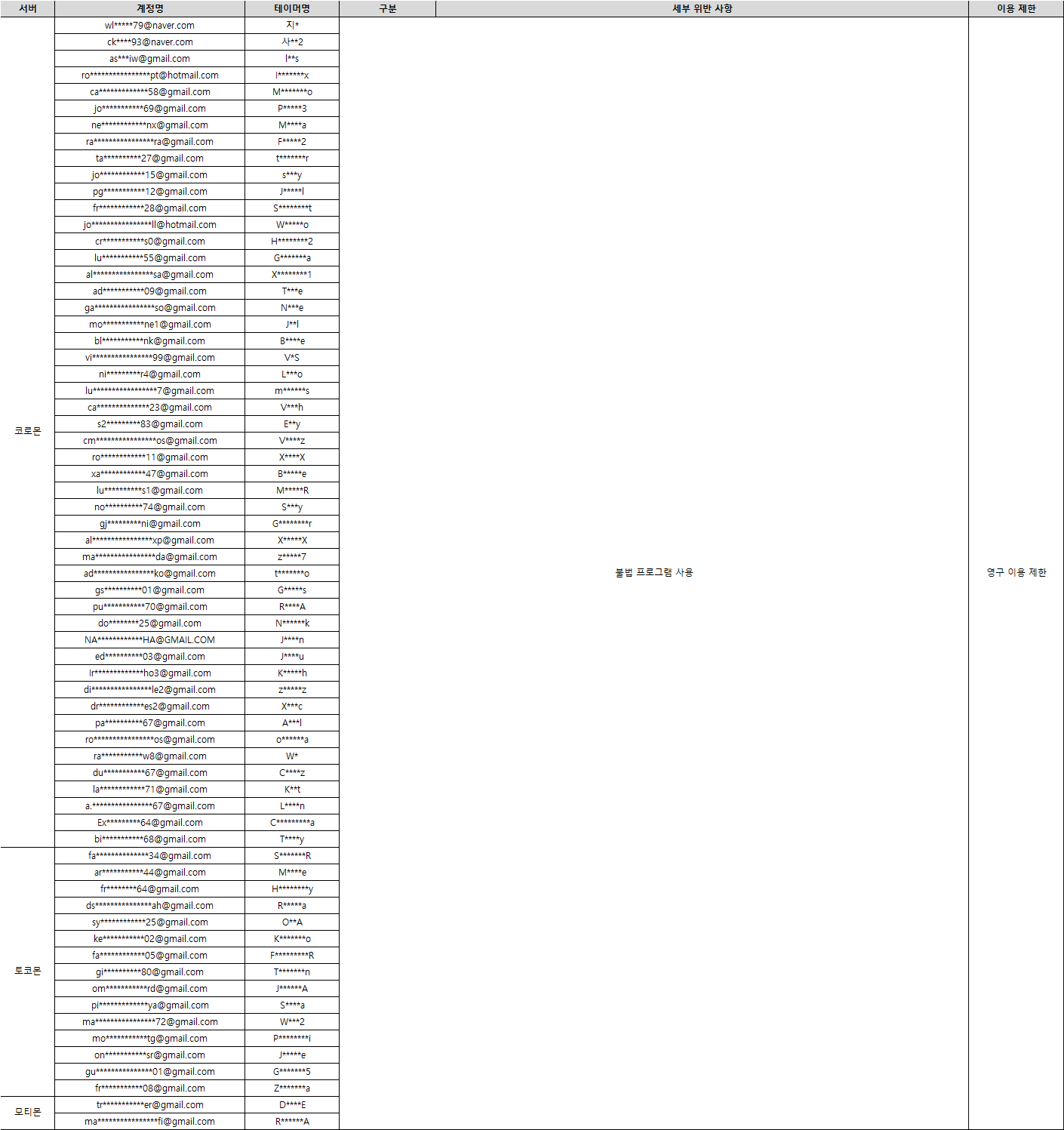 접수된 문의 내 확인된 운영정책 위반 계정 제재를 안내드립니다.